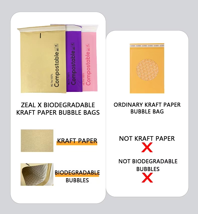 Minangka produsen tas kertas profesional, Zeal X nawakake mailers gelembung kertas kraft biodegradable sing bisa disesuaikan kanthi lengkap, kalebu ukuran khusus, percetakan logo, lan pilihan bobot kertas. Mailer kompos iki 100% biodegradable, ora beracun, lan bebas polusi, saengga cocog kanggo strategi kemasan sing lestari. Kanthi resistensi luh sing kuwat, desain sing entheng, lan proteksi sing bisa dipercaya kanggo pangiriman ekspres, mailers gelembung kertas kraft kita dipercaya dening para penjual eCommerce global sing nggoleki solusi pengiriman sing ramah lingkungan, tanpa plastik.