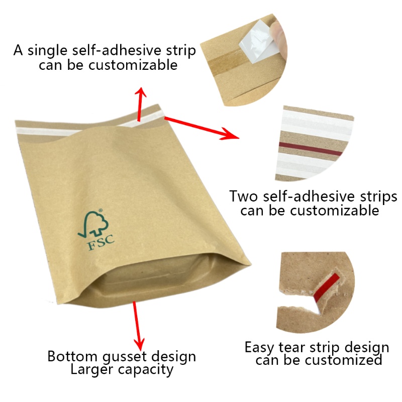 Fitur: Biodegradable Kraft Paper Mailer Celana anti banyu, ora wedi banget karo udan; Panggunaan adesif super, ngrusak panyeget karet, nglindhungi privasi, privasi apik.