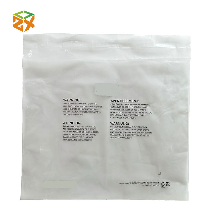 Fitur: Kantong Poli Plastik Nganggo LDPE 100% sing bisa didaur ulang - ora beracun, ora enak, ramah lingkungan, warna transparan, segel adesif sing digedhekake - Strip adesif sing disegel kanthi rusak utawa segel adesif sing bisa ditutup maneh.